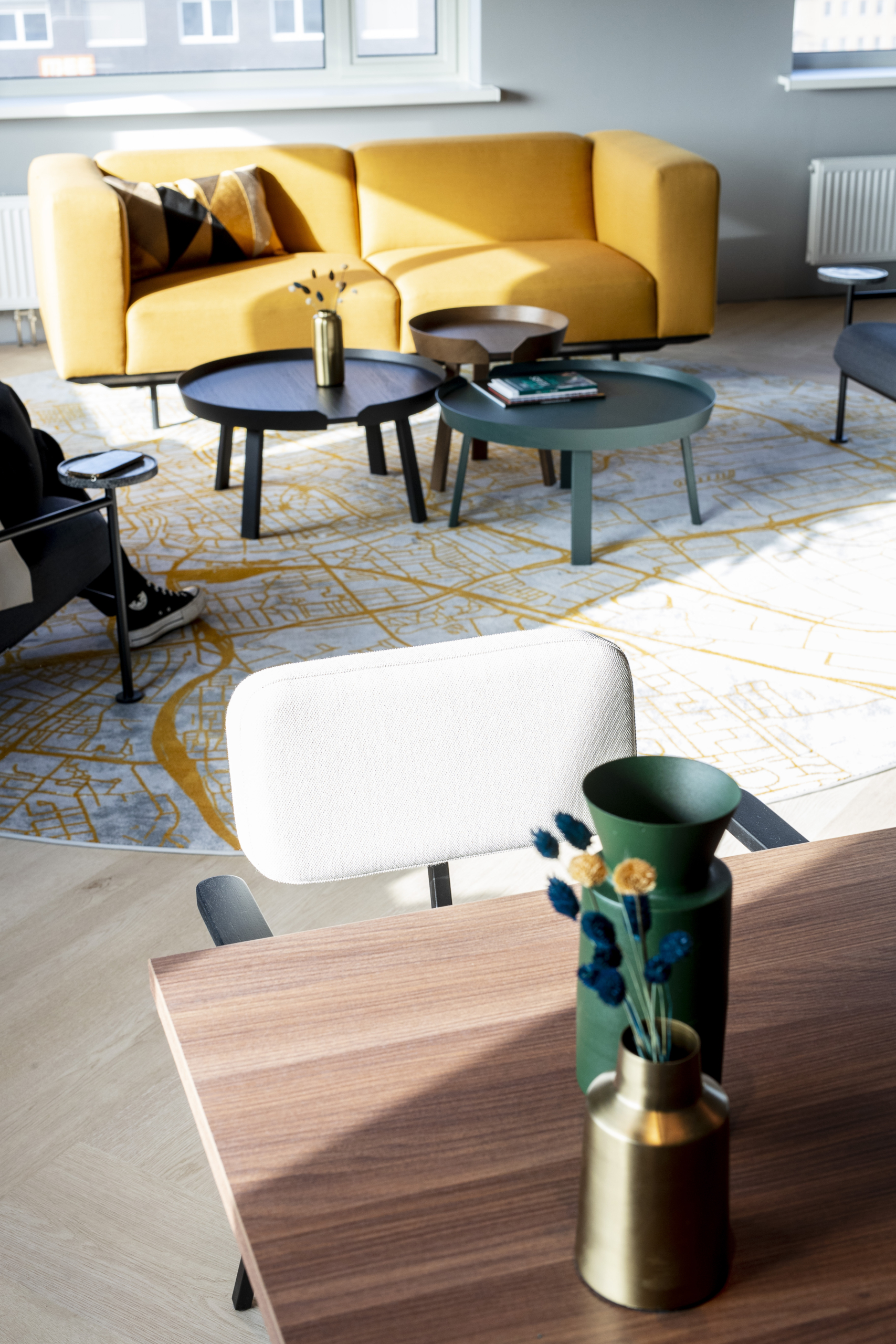 Denk aan aan een sfeervol ingerichte managementkamer, waar planten en zorgvuldig uitgekozen accessoires de professionaliteit en een huiselijke sfeer combineren. Van schilderijen en lampen tot kussens en tafelementen: elk spelen ze een cruciale sfeerbepalende rol. Thuis maak je het toch ook gezellig?