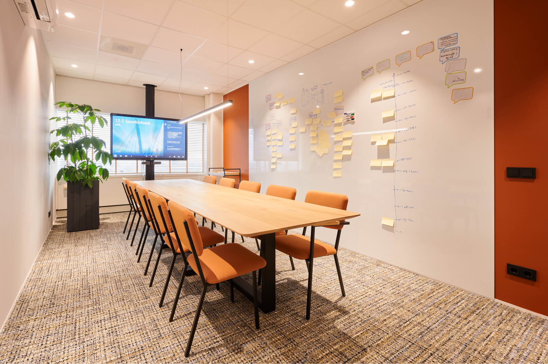 En wie beweert dat functioneel niet samengaat met kwaliteit en design, kent ons nog niet. Met slimme vergadertafels voorzien van geïntegreerde schermen is inzichten delen een koud kunstje. Comfortabel loungemeubilair maakt dat je daarna even loskomt van de tafel. En wat dacht je van een glazen whiteboard wand waarop alle ideeën tot leven komen? Wat de opgave ook is, onze Meesters in Inrichting zorgen ervoor dat alles in de ruimte op rolletjes loopt. Op zoek naar professioneel advies over projectruimtes? Bel of mail ons gerust. Wij verrassen je graag met de creatieve concepten en innovatieve oplossingen die wij in petto hebben.